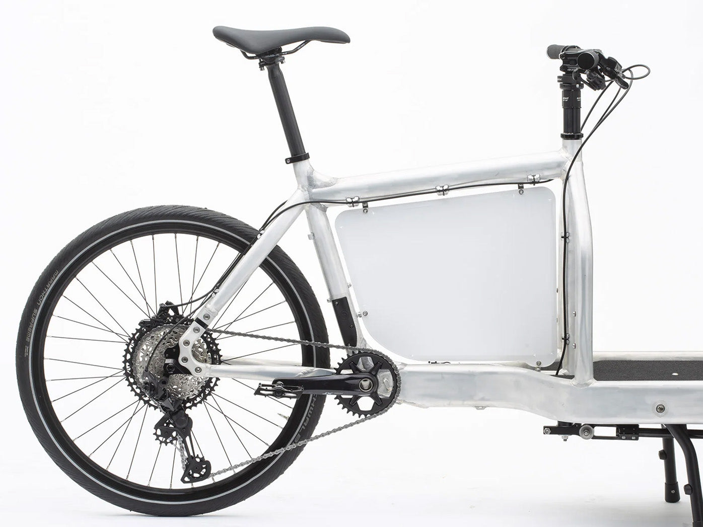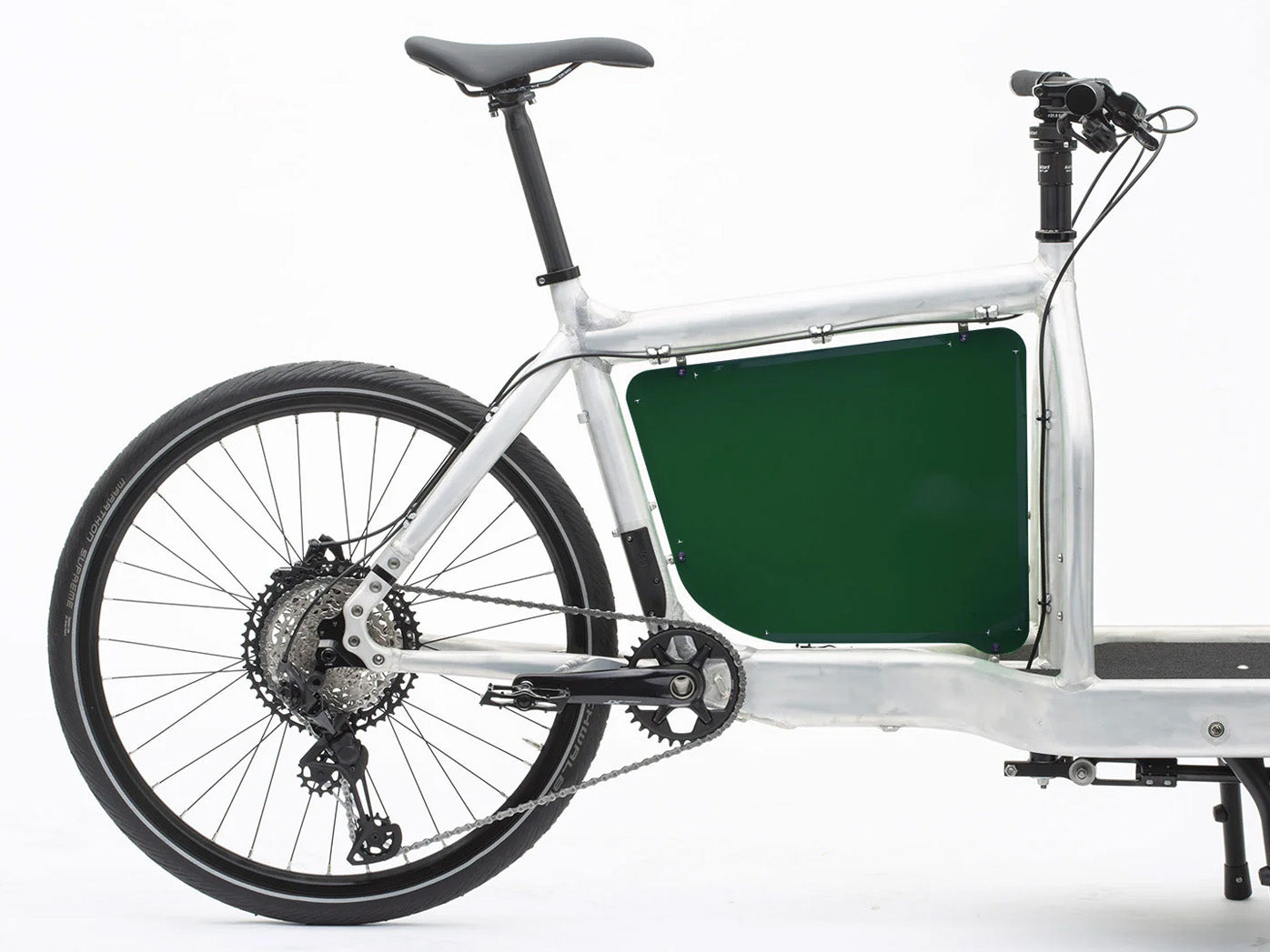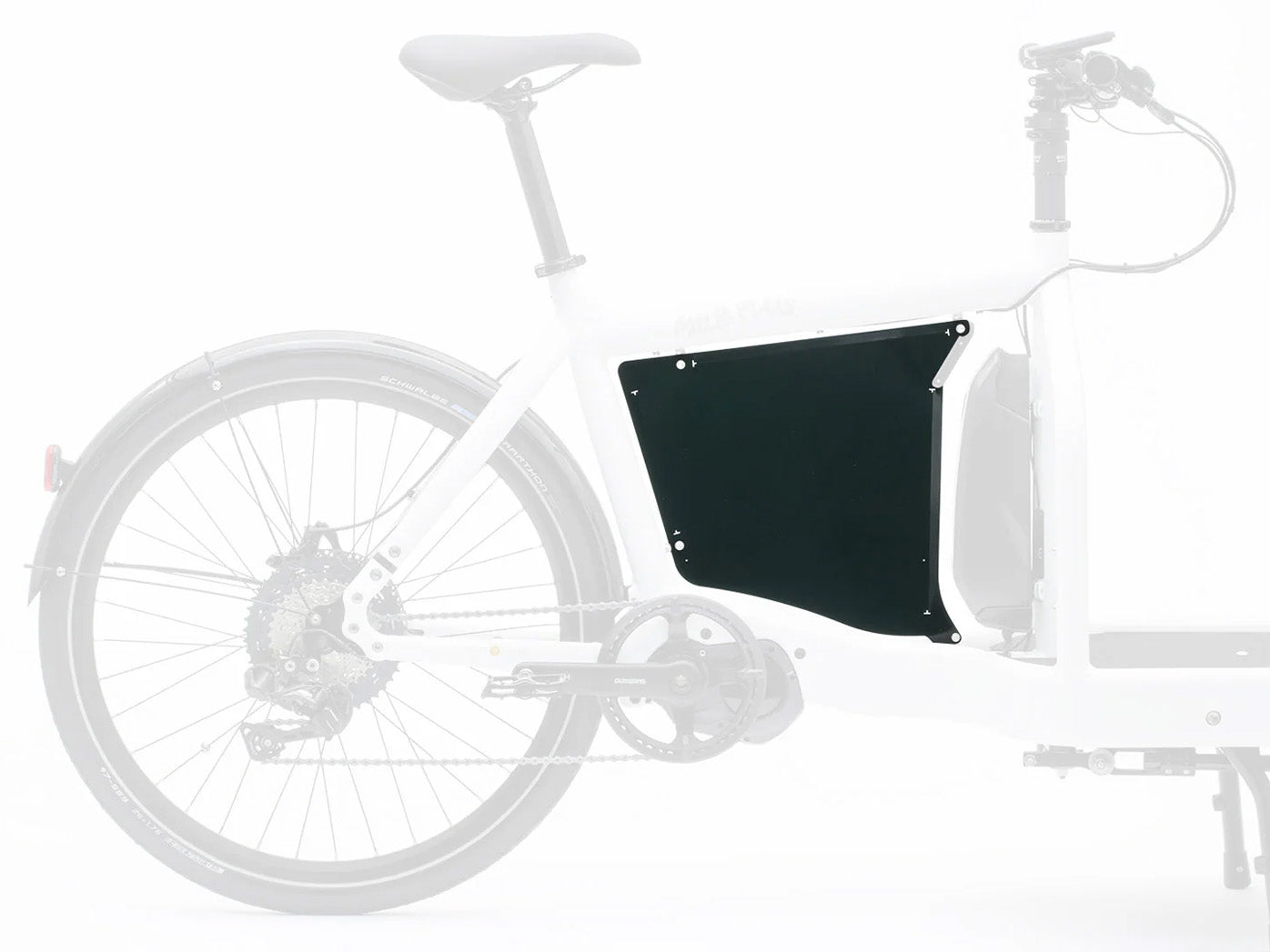 Panelet vejer kun 0,5 kg og er fremstillet i aluminium med rustfri stålfittings. Det giver en stærk, men let løsning, som holder til daglig brug uden at belaste cyklen.