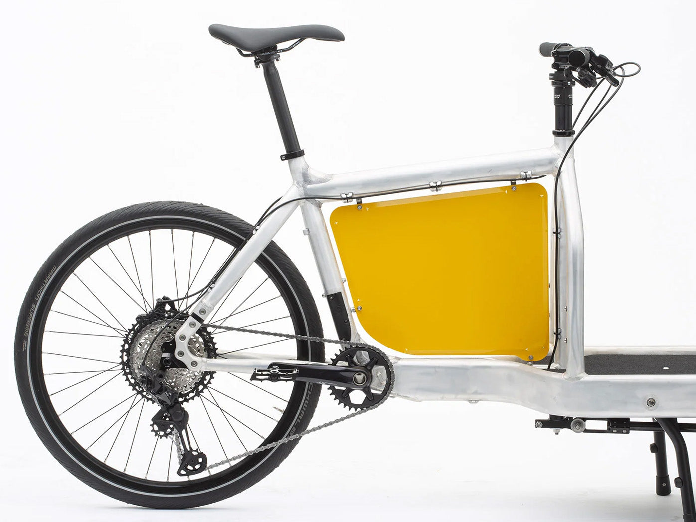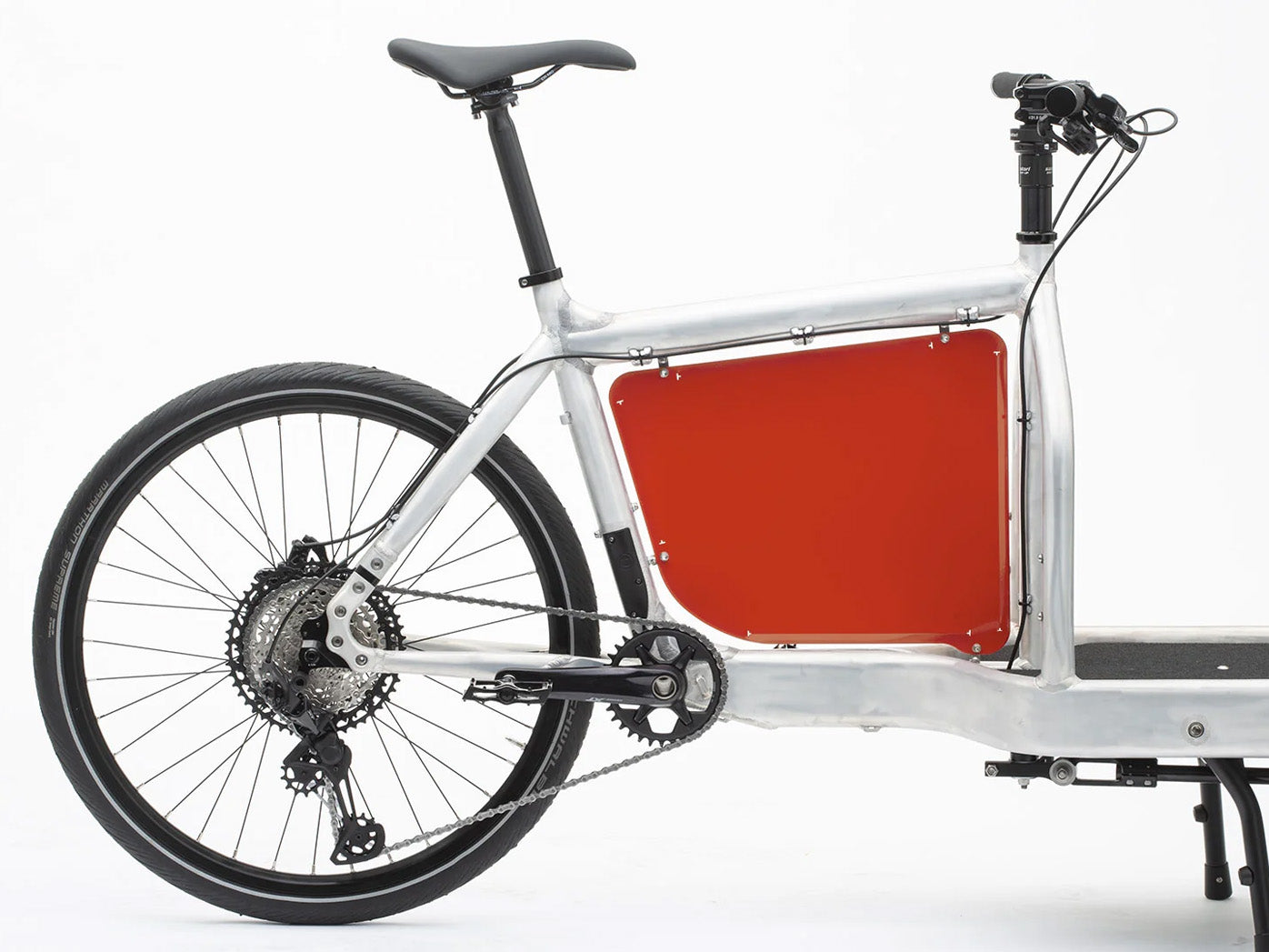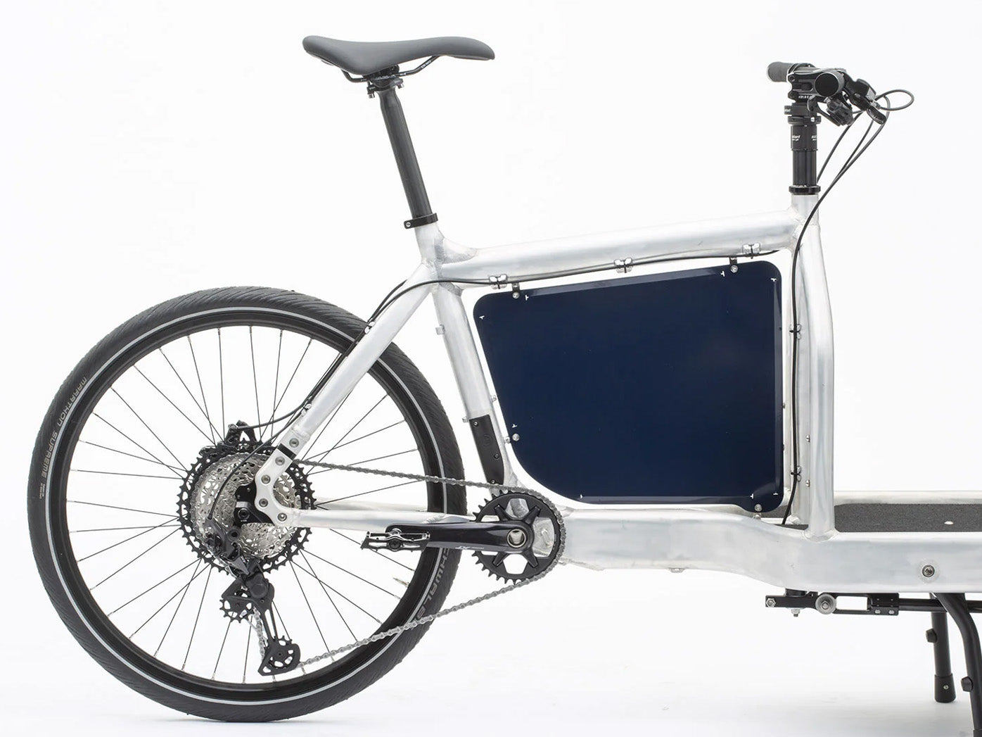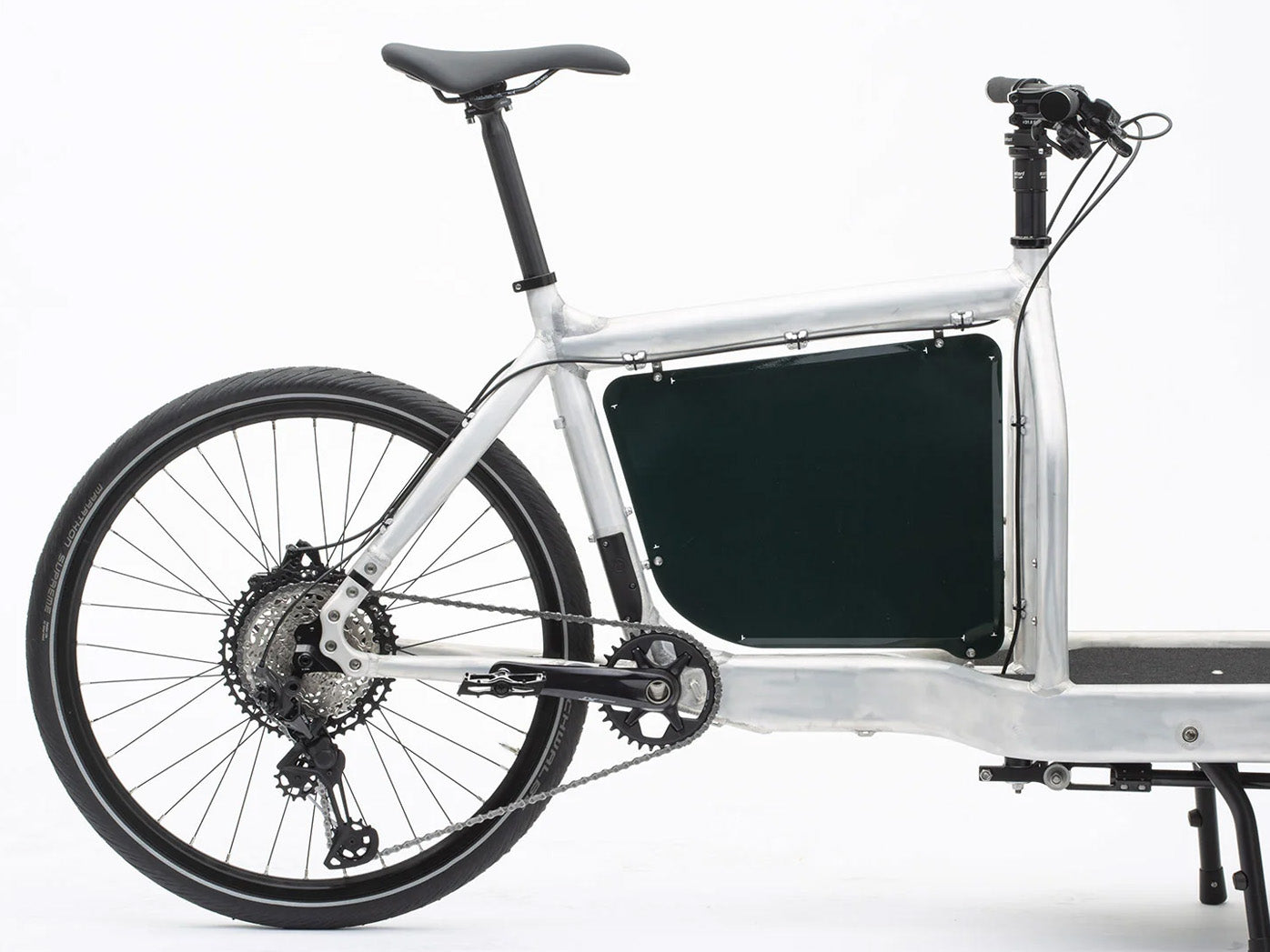 Panelet vejer kun 0,5 kg og er fremstillet i aluminium med rustfri stålfittings. Det giver en stærk, men let løsning, som holder til daglig brug uden at belaste cyklen.