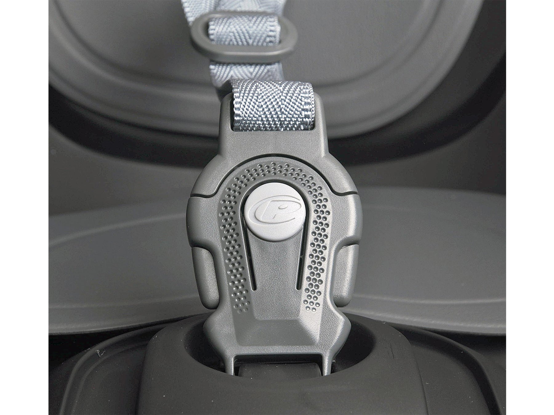 Sikkerheden er i top med 3-punkts sikkerhedssele og et børnesikkert enhåndsspænde, der gør det nemt at fastgøre barnet med én hånd, mens du støtter cyklen med den anden.