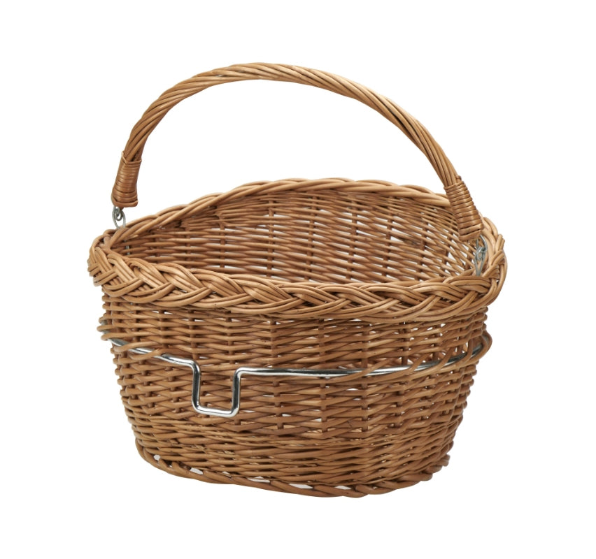 Kurven er håndlavet af ægte pileflet, hvilket giver et naturligt og charmerende udtryk. Det foldbare håndtag gør det nemt at tage kurven med sig, når du står af cyklen – perfekt til indkøb eller korte ærinder.