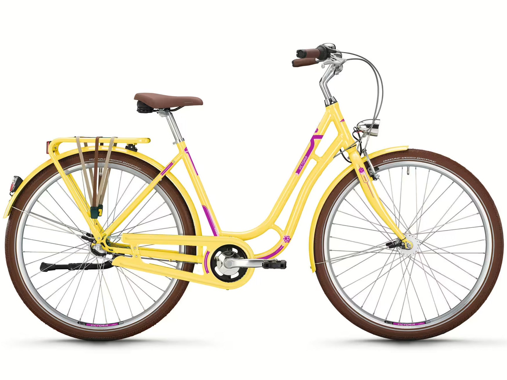Victoria Antiqa 3 er en nostalgisk damecykel, der kombinerer klassisk elegance med moderne funktionalitet. Med sit smukke stel i farverne Mahagoni Red eller Citrus Yellow udstråler den charme og personlighed – perfekt til både bykørsel og rolige hverdagsture.