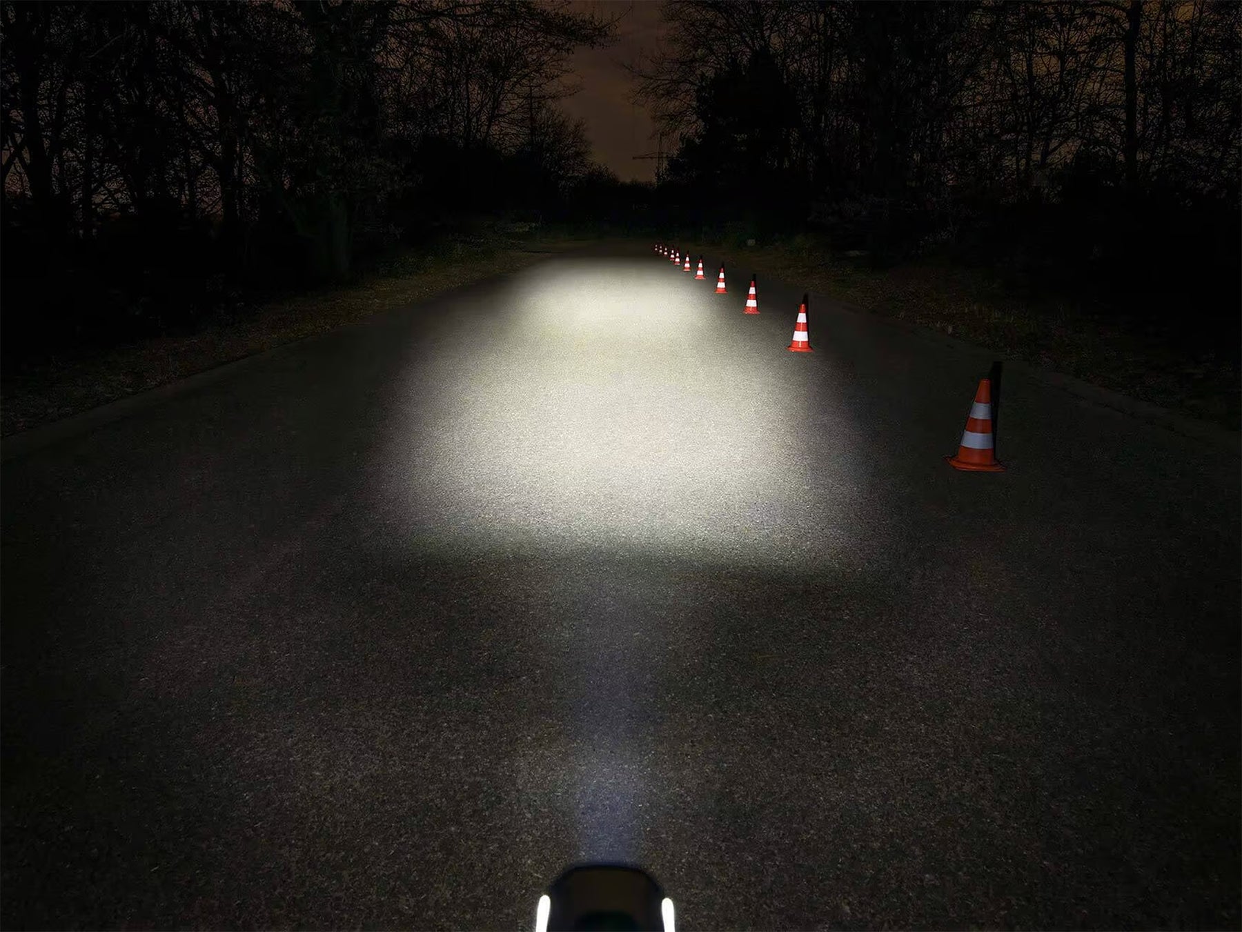 Med en lysrækkevidde på op til 90 meter og StVZO-godkendelse lever den fuldt op til de europæiske sikkerhedsstandarder.