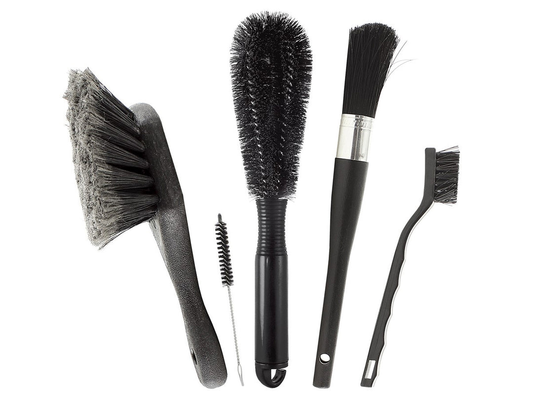 Børstesæt: Forskellige børster er essentielle for at nå alle dele af cyklen, især de svære områder som kæde, tandhjul og mellemstel. Der findes specialdesignede børster til kæder og gear.