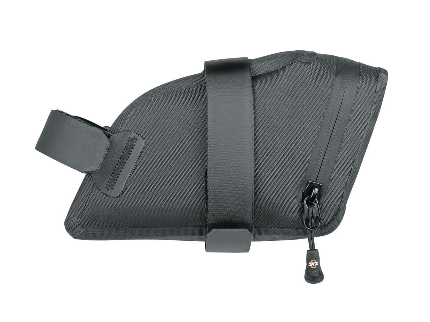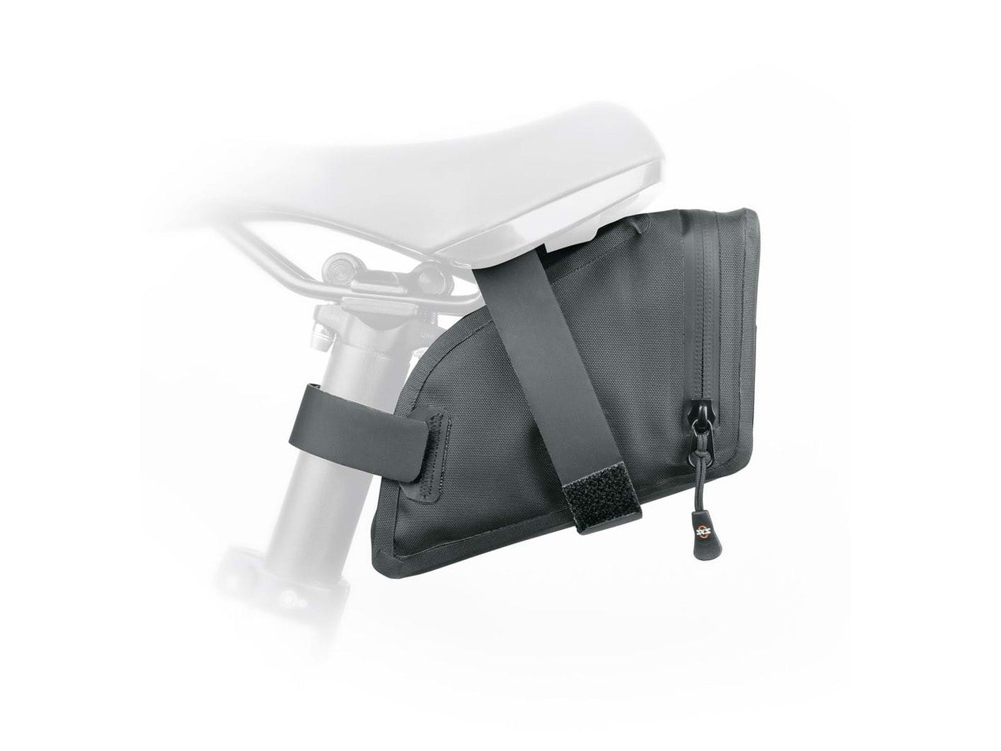 Med skrid­sikre, forkortbare velcrobånd monteres tasken nemt og sikkert under sadlen. Den er udstyret med en baglygteholder samt reflekterende elementer, som øger sikkerheden, når du cykler i mørke.